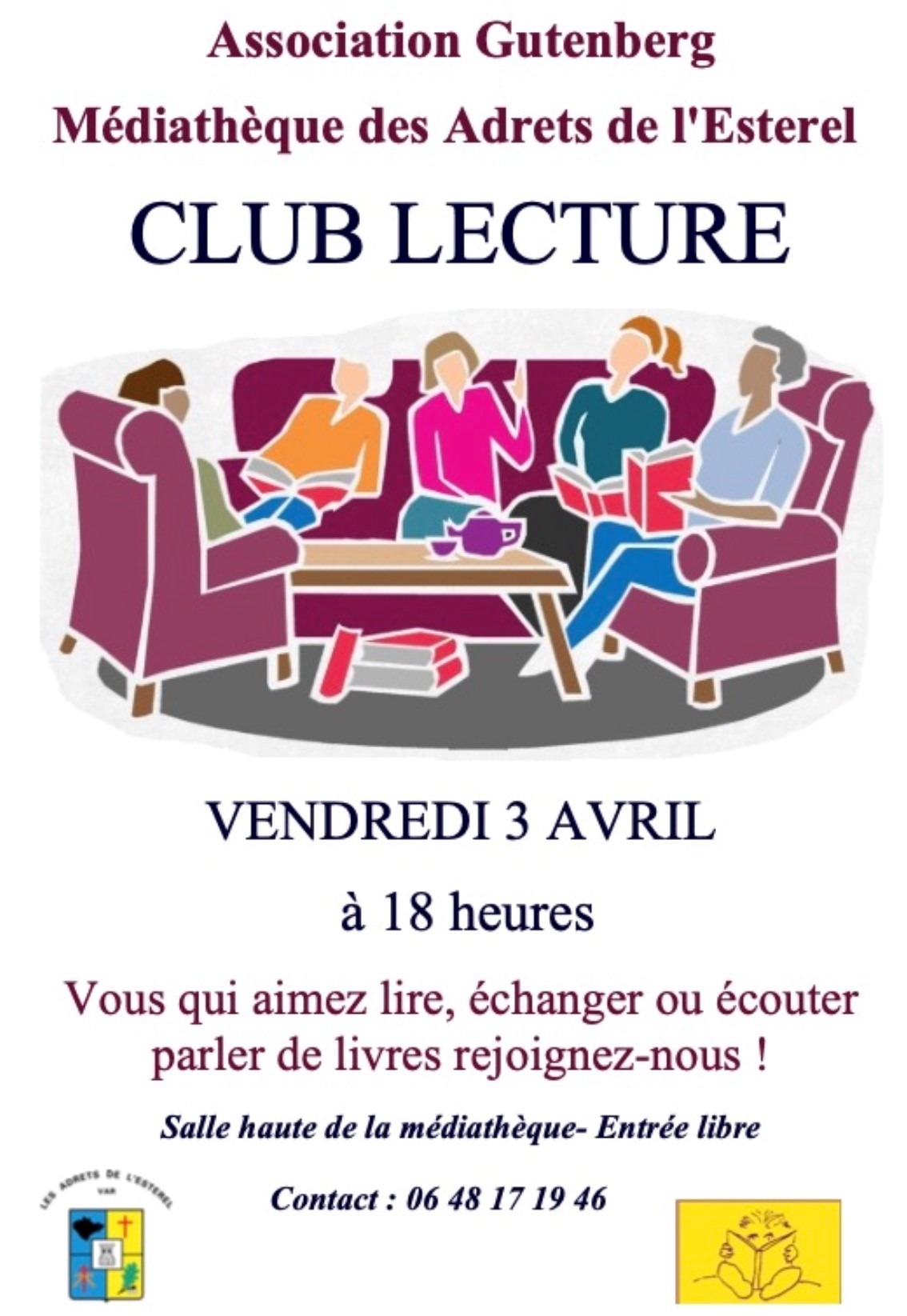 L’association GUTENBERG a le plaisir de vous inviter à un moment d’échange chaleureux autour de vos lectures, le vendredi 3 avril 2026 à 18h00, à la médiathèque des Adrets.